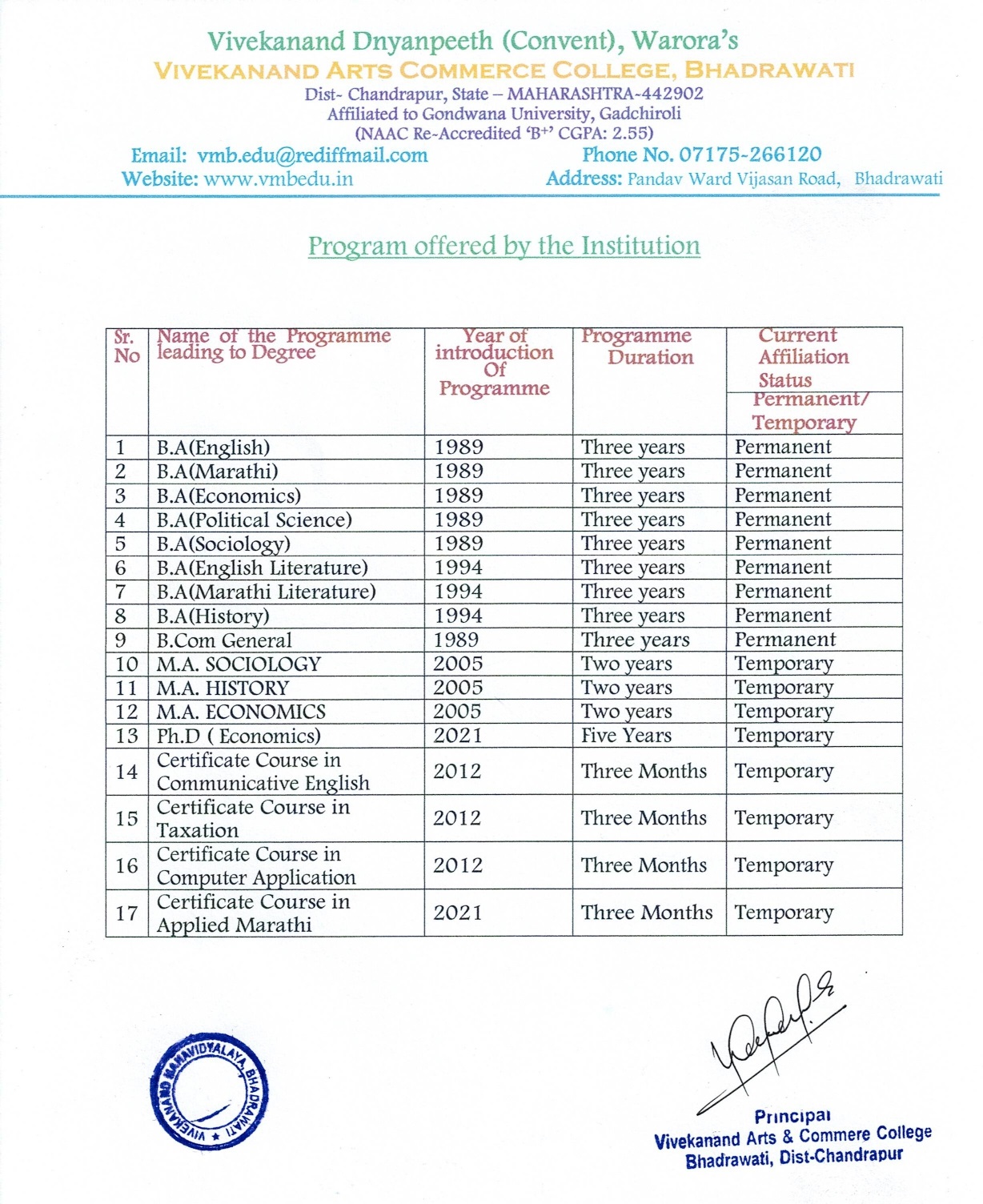 Programs Offered By Institute